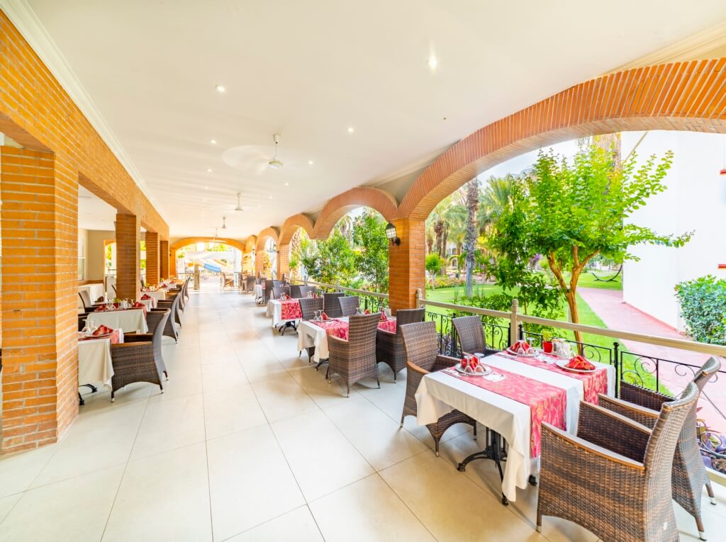 Breakfast, lunch and dinner are served as open buffets; local beverages are complimentary 24 hours within the hours and brands designated by the facility. Some international brand beverages, all bottled beverages, freshly squeezed orange juice and birthday cake are chargeable. Turkish coffee is complimentary. A'La Carte Restaurants are chargeable and require reservation one day in advance. Working days and opening hours may be changed by Hotel Management.